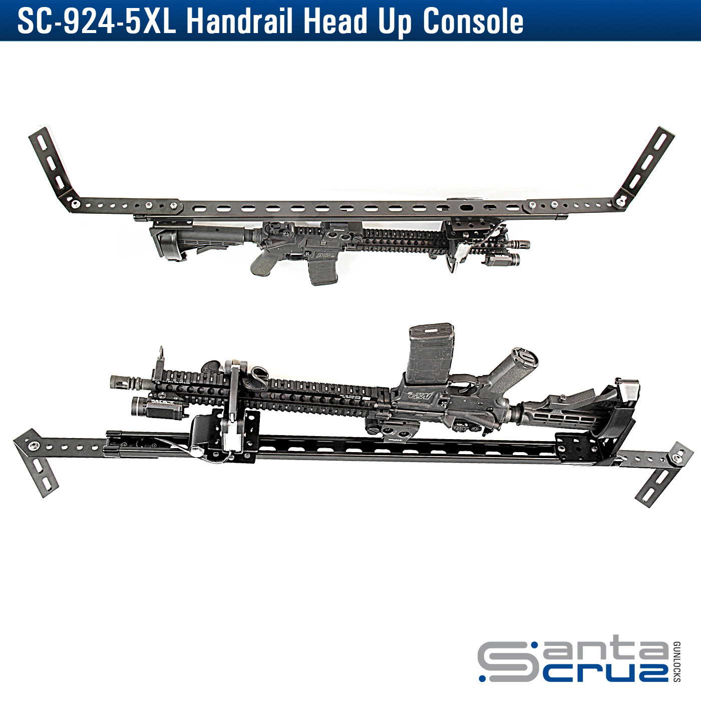 Our SC-924 system is designed to secure a firearm overhead in a vehicle that is not equipped with a partition wall or prisoner cage. This unit is universal in nature and can be secured in a variety of vehicles utilizing the grab handle locations or in some cases the coat hanger hooks. This system can be purchased with any of the gunlocks provided by Santa Cruz Gunlocks and can also be assembled as a dual unit.
